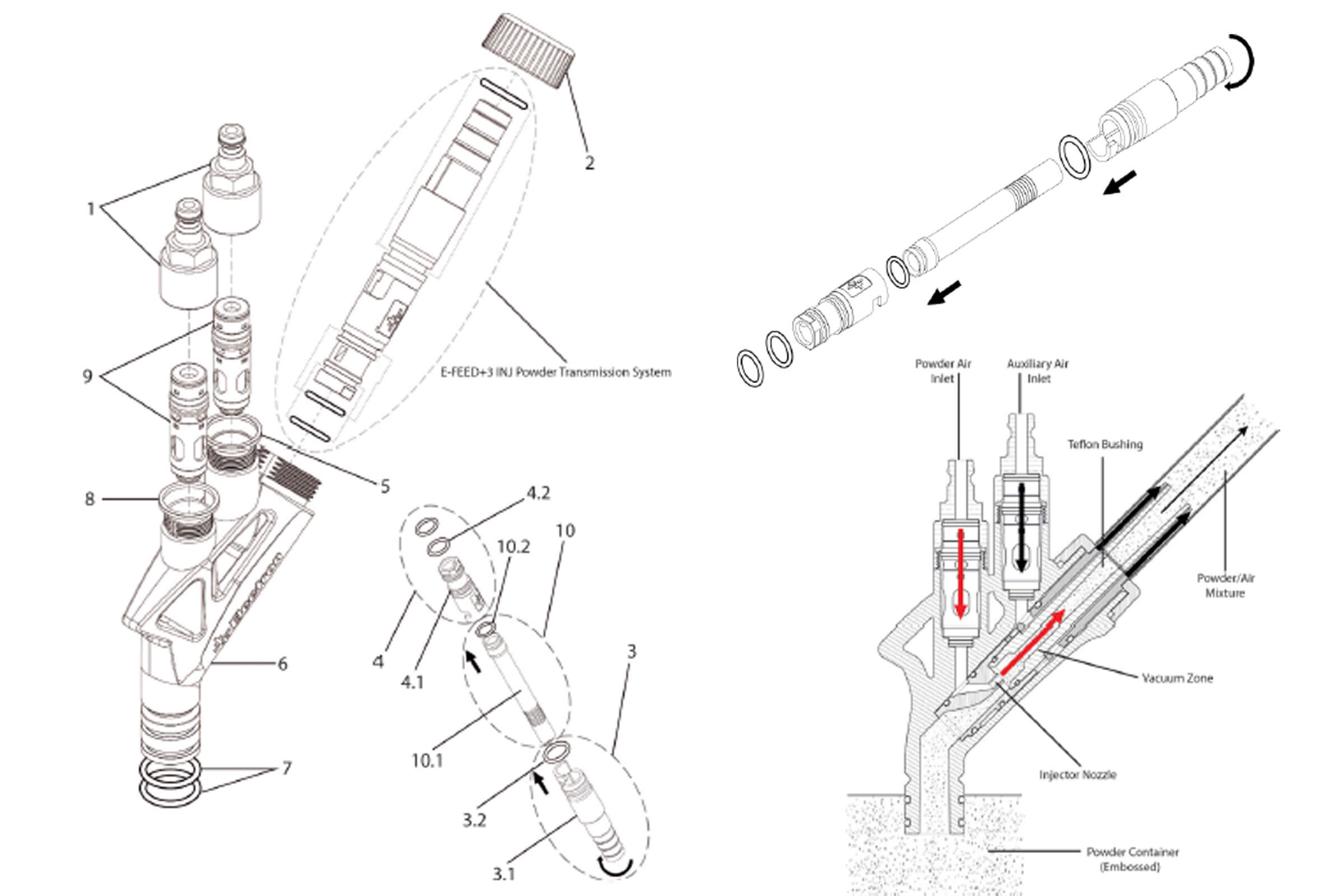 The Electron E-FEED+3 INJ Series powder coating injector is suitable for both manual and automatic applications. Thanks to its angled structure, Electron 3rd generation powder coating injector provides 25% more powder transfer than right angle injectors and consumes 10% less air. It offers an optimum coating solution thanks to homogeneous painting, energy efficiency, and easy maintenance. With its patented filter structure, it ensures the application safety of the equipment to which it is connected.