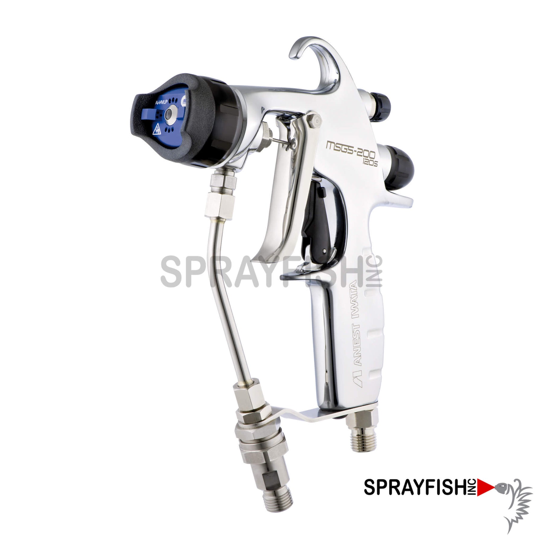 Anest Iwata MSGS-200 is a high-quality chrome plated Air-Assisted Airless Spray Gun. This gun offers the advantages of airless technology with quality benefits of airspray, resulting in a product with high transfer efficiency and excellent finish quality. This gun was designed with the sprayer in mind, with a super light trigger pull and an air cap design for easy adjustment and pattern width control. This gun utilizes Iwata, Sprayfish, and Kremlin® standard and fine finish spray tips. We guarantee once you've tried this gun you won't want anything else!